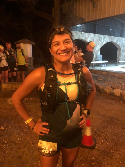Lone Star Bird Aracely is getting ready for her first 50k. She’s got the same manic grin as Megan and she’s doing side lunges while her family gives her a pep talk.